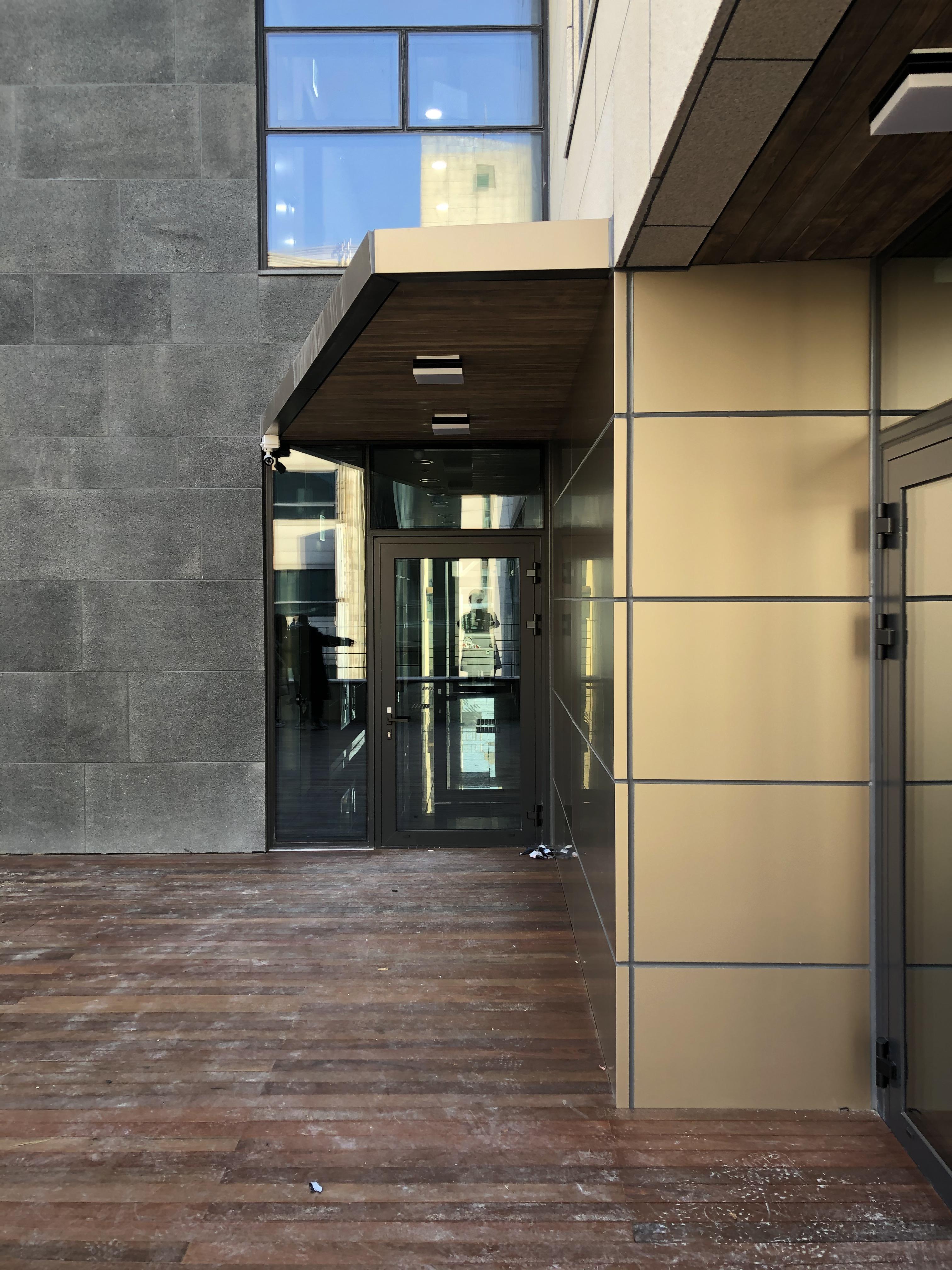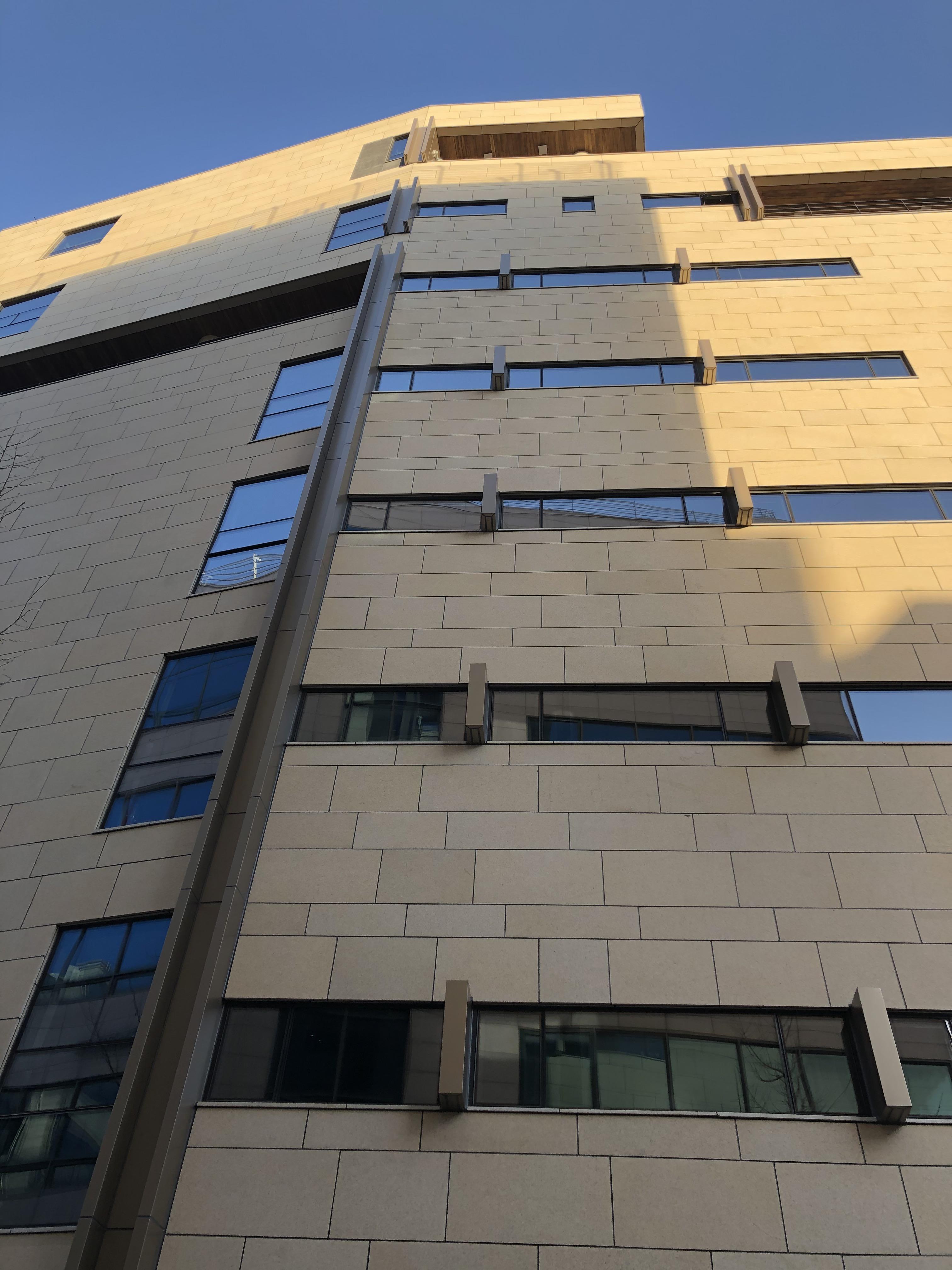 주 외장재는 사비석을 잔다듬 가공하여 사용하였고, 부분적으로 검은색의 마천석을 잔다듬 가공하여 조화시켰다. 업무공간의 특성상 빛 환경으로는 좋지 않은 서쪽에는 창을 적게 두었고 보행자들과 접하는 1층은 도로를 향해 적극적으로 열어 눈높이 에서의 적극적인 소통을 하게 하였다.